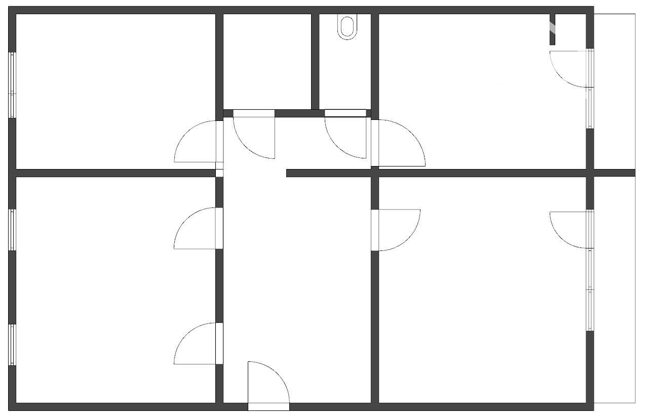 - vstupná predsieň, veľká izba, menšia izba, samostatné WC, kúpeľňa, chodba, kuchyňa s výstupom na balkón, obývacia izba s výstupom na balkón