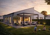 Predsieň, chodba, 3x spálňa, kúpeľňa, WC, technická miestnosť, obývacia izba s kuchyňou a jedálenským stolom, terasa.
