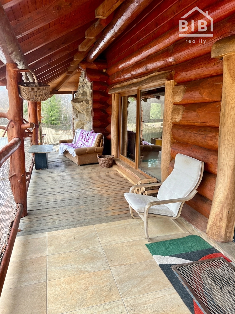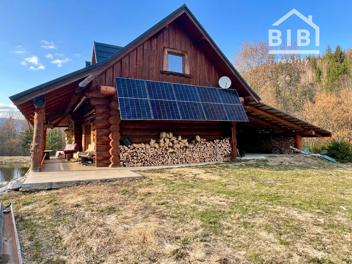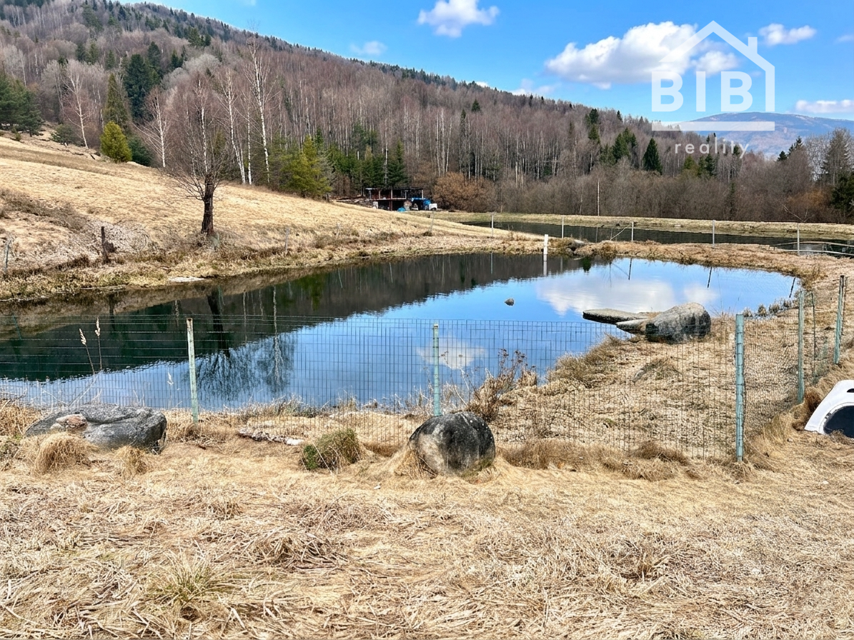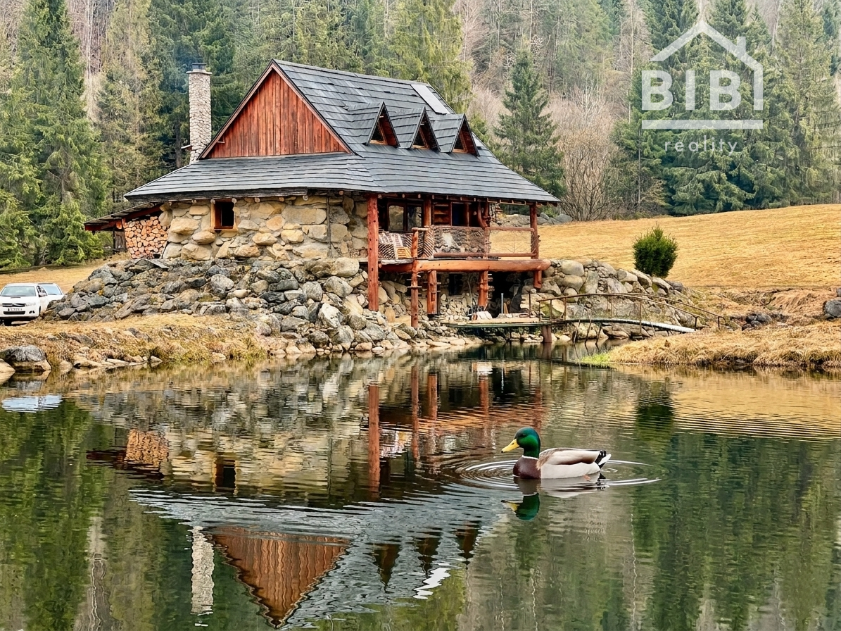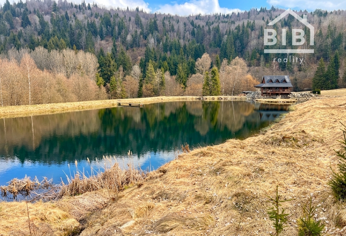 BIBI reality s.r.o. Vám ponúka na predaj peknú veľkú chatu s vlastými jazerami a obrovskými pozemkami viac ako 121 000 m2 neďaleko obce Polomka. Areál sa nachádza 4 km od obce Polomka , uprostred lesa a veľkých lúk. Chata bola stavaná asi 10 rokov z poctivej veľkej gulatiny a obrovského prírodného kameňa. Celkovo má tri poschodia. V suteréne sa nachádza garáž, chodba, veľká kúpelňa s veľkou vaňou, technická časť. 1. poschodie je veľká obývacia izba s kuchyňou a v podrokoví sú 3 spálne spolu so 7 lôžkami na spanie a WC. Elektrina je riešená cez fotovoltaické panely, zároveň je príprava na turbínu a ziskavanie energie z vody. Voda je vlastná studňa. Odpad je riešený cez septik. Vykurovanie cez veľký kamenný krb + podlahové kúrenie + radiátory. Je to naozaj krásna a poctivá stavba s veľkou hodnotou aj naozaj veľmi dlhou životnosťou.
