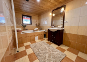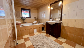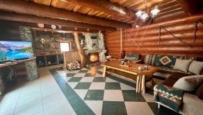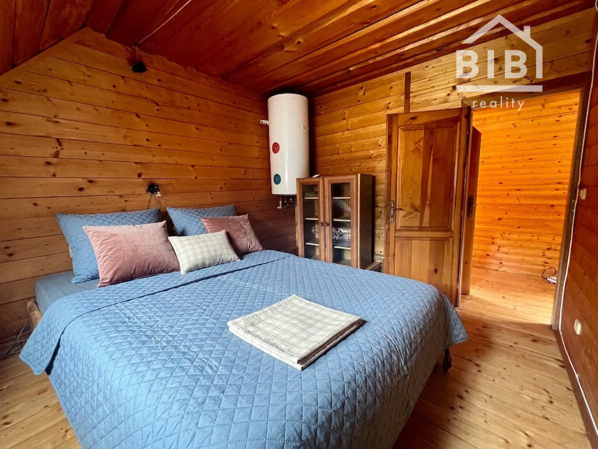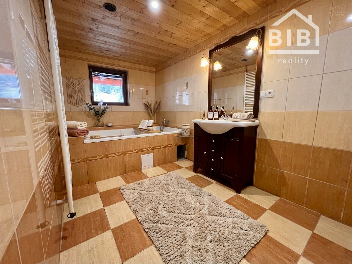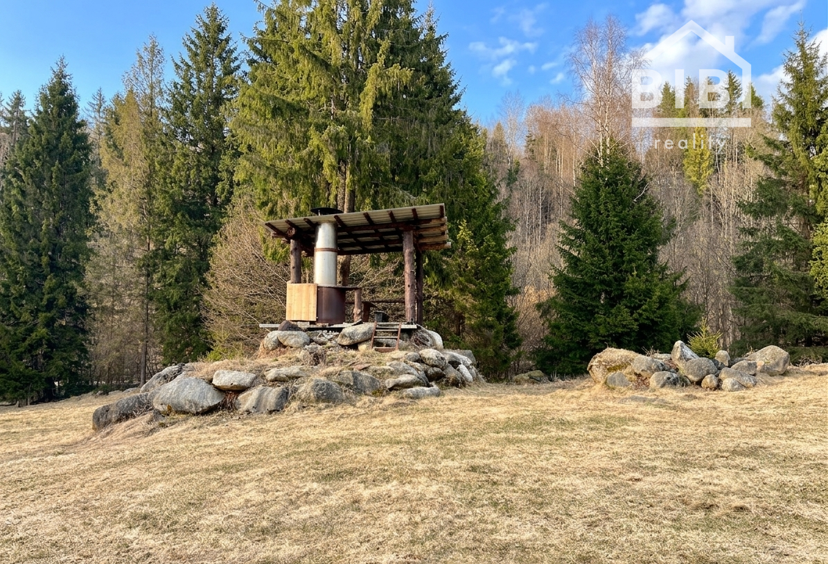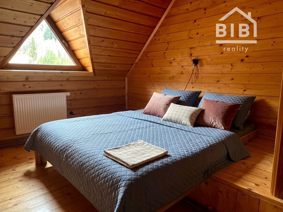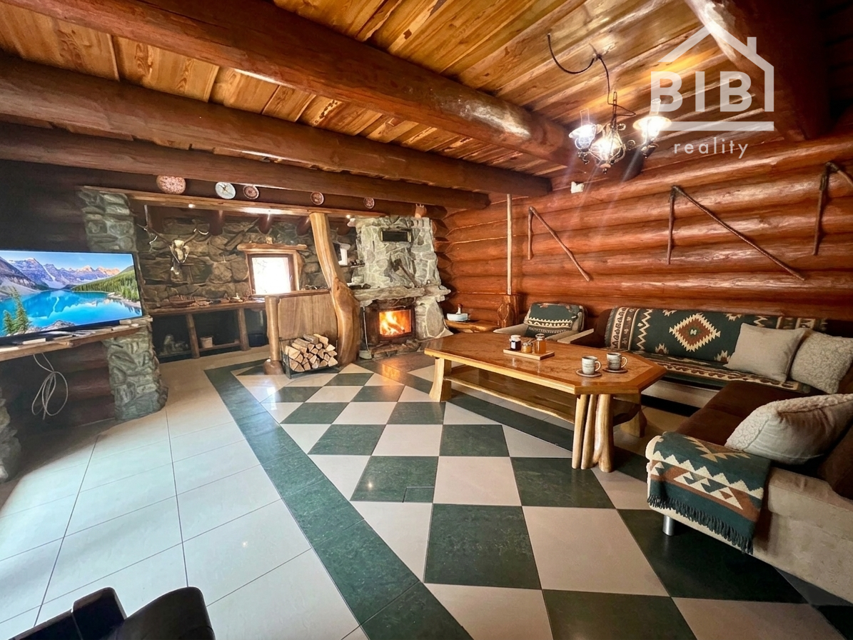 BIBI reality s.r.o. Vám ponúka na predaj peknú veľkú chatu s vlastými jazerami a obrovskými pozemkami viac ako 121 000 m2 neďaleko obce Polomka. Areál sa nachádza 4 km od obce Polomka , uprostred lesa a veľkých lúk. Chata bola stavaná asi 10 rokov z poctivej veľkej gulatiny a obrovského prírodného kameňa. Celkovo má tri poschodia. V suteréne sa nachádza garáž, chodba, veľká kúpelňa s veľkou vaňou, technická časť. 1. poschodie je veľká obývacia izba s kuchyňou a v podrokoví sú 3 spálne spolu so 7 lôžkami na spanie a WC. Elektrina je riešená cez fotovoltaické panely, zároveň je príprava na turbínu a ziskavanie energie z vody. Voda je vlastná studňa. Odpad je riešený cez septik. Vykurovanie cez veľký kamenný krb + podlahové kúrenie + radiátory. Je to naozaj krásna a poctivá stavba s veľkou hodnotou aj naozaj veľmi dlhou životnosťou.