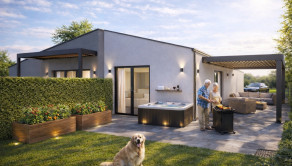 Predsieň, chodba, 3x spálňa, kúpeľňa, WC, technická miestnosť, obývacia izba s kuchyňou a jedálenským stolom, terasa.